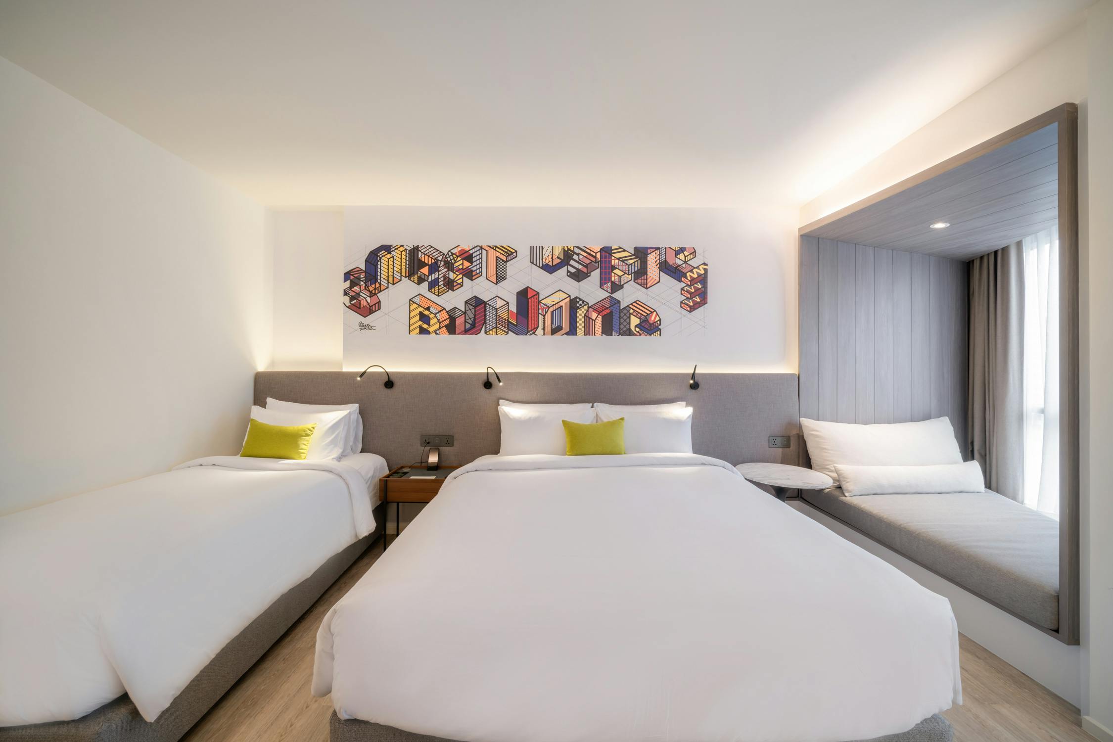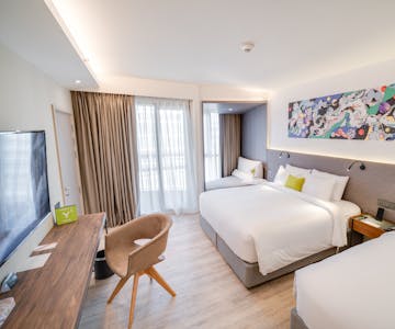 The 34-sq.m. Deluxe Triple Room is designed for a king-sized bed (6 ft. bed) and a twin-sized bed (3.5 ft. bed) which suits for travelers with friends or family for the best experience of their stay.